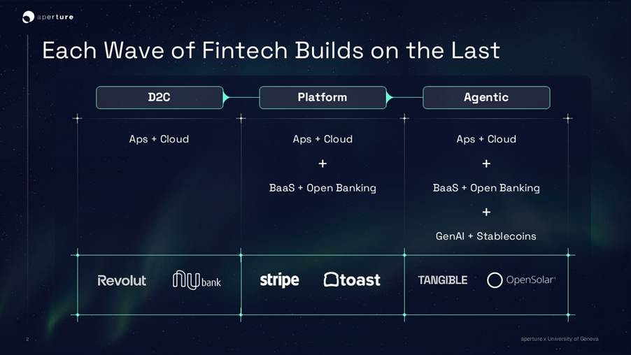 The last wave of fintech created many industry giants. To give just a few examples, consider Revolut (now the largest European bank by customer numbers), Stripe (which processes 1.5% of global GDP), Circle (a bumper IPO in 2025 with over $60 billion of stablecoins in circulation), Plaid (empowering over 2,500 fintech businesses) and Toast (a VSaaS platform for restaurants which makes a cool $4.5 billion from payments).