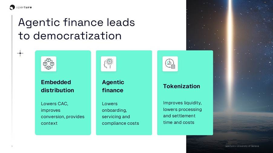 Furthermore, when you layer GenAI on top of other fintech infrastructure, you start to see the compounding effect. Embedding wealth management into existing applications, like say a payroll app, provides access, data and customer context. GenAI can then handle the onboarding and create personalized portfolios. Smart contracts could then auto-rebalance the portfolio according to pre-agreed rules. The result: lower CAC, lower cost to serve, higher customer satisfaction and a much larger addressable market.