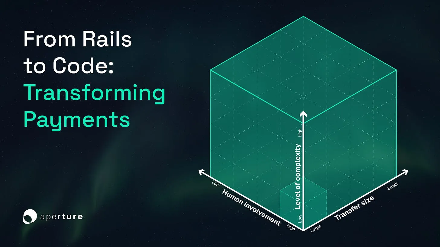 For most of the digital era, only a narrow part of this space was active. Large, simple, human-supervised electronic payments dominated. They justified the cost of the rails and matched the cautious approach of banks and regulators. Other parts of the model stayed unused. Small electronic payments were too costly because fixed fees, fat margins for those who owned the pipes, and bad user experience made them hard to sustain. While small retail payments did take place, they often did so in cash and cheques rather than electronically. Complex electronic payments depended on manual checks, long chains of service providers, and reconciliation across different ledgers. Autonomy was effectively impossible, as each step required human sign-off.
