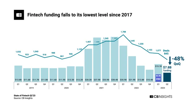 Valuations of the technology sector as a whole have been negatively impacted by rising interest rates. As the cost of capital rises, the value of future cashflows are marked down. This disproportionately affects early-stage and not-yet-profitable companies since so much of their worth is reflected in their terminal value. But fintech startups were particularly badly hit as their products are about the movement of money itself, so changes to capital flows have an amplified effect which ripples through the sector.